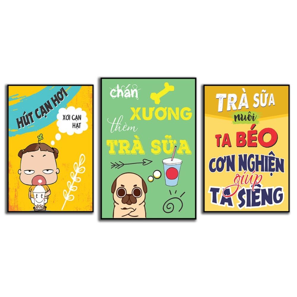 Tranh trang trí quán trà sữa hiện đại, tranh quán trà sữa bộ ghép treo tường nhiều mảnh trang trí