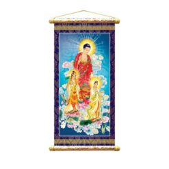 Tranh Phật giáo, Phật A Di Đà, Quan Âm, tam thánh, tranh thangka mật tông treo tường, tranh nẹp gỗ, sáo trúc bằng vải bố