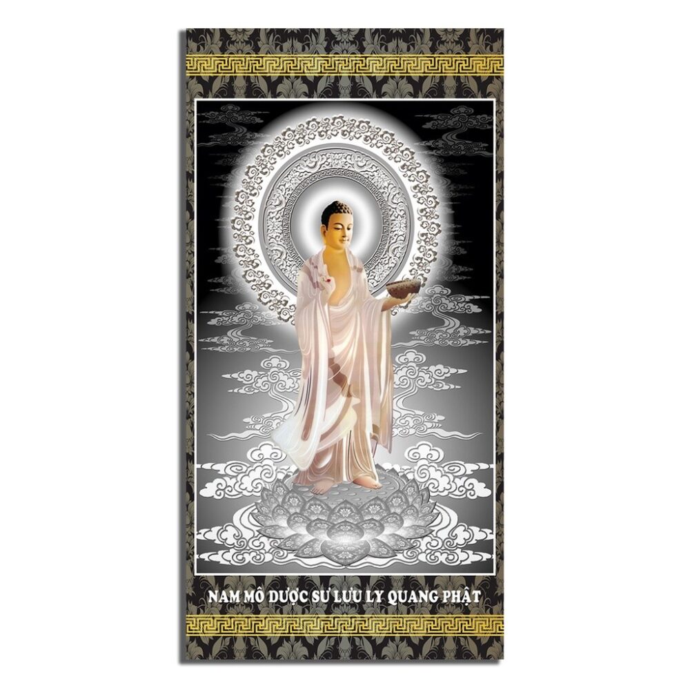 Tranh Phật Thích Ca, hình quan âm in trực tiếp, hình Phật Dược Sư trên lá bồ đề có khung loại hình thờ phật cao cấp.