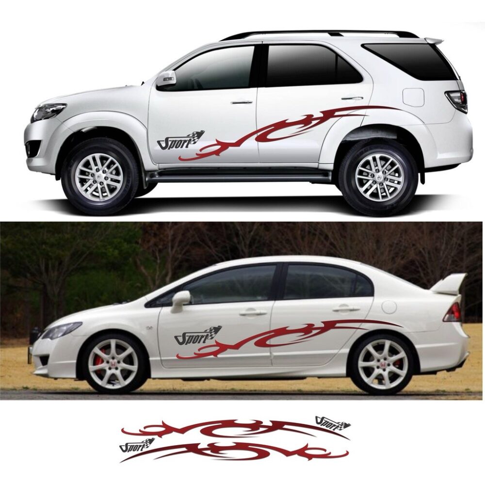 Tem dán sườn xe Mazda, Honda City, Toyota,….. Decal trang trí xe 4 chỗ phù hợp nhiều dòng xe, tem xe sedan có kèm HDSD