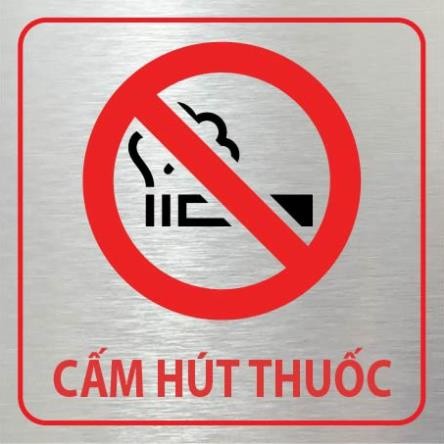 Bảng cảnh báo cấm hút thuốc được làm bằng alu inox mờ, tạo độ tương phản, đẹp và chắc chắn dán trực tiếp vào tường bằng keo 2 mặt