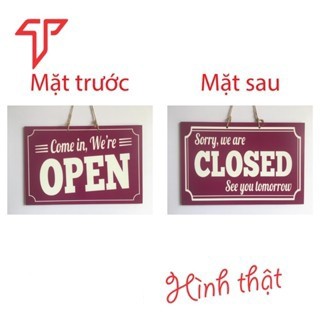 Bảng treo đóng mở cửa, open- closed bằng gỗ 2 mặt cho nhà hàng, khách sạn, cửa hàng