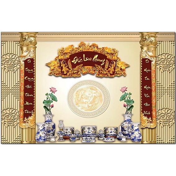 Review Tranh canvas phòng thờ, mâm ngũ quả, câu đối, liễng thờ, bình phong, hoa sen, tranh trang trí phòng thờ nhiều mẫu.
