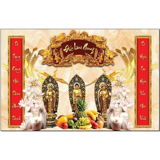 Chất liệu tranh được in chất liệu vải lụa (canvas) loại cao cấp. In theo yêu cầu gian phòng thờ của bạn.