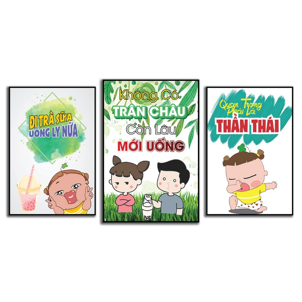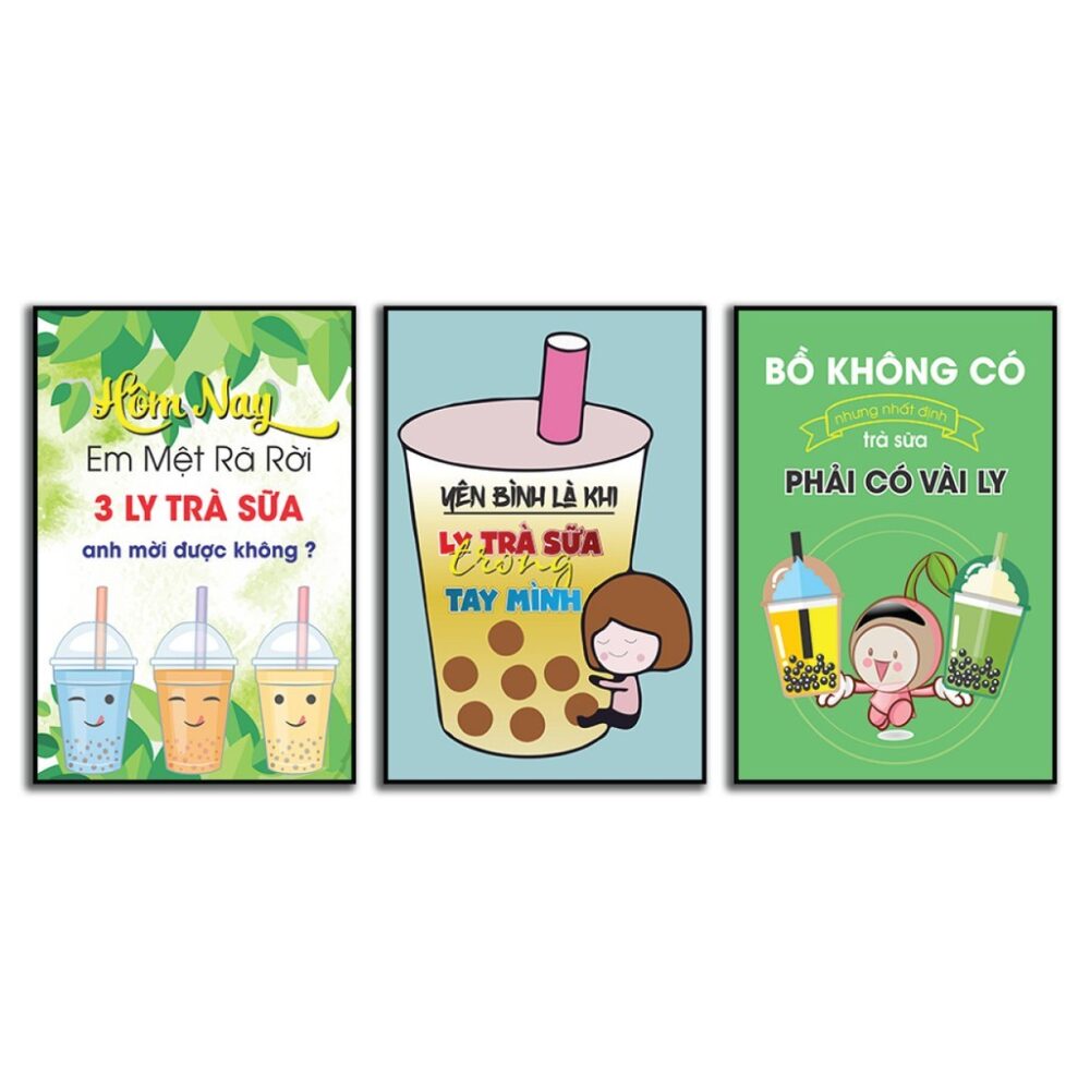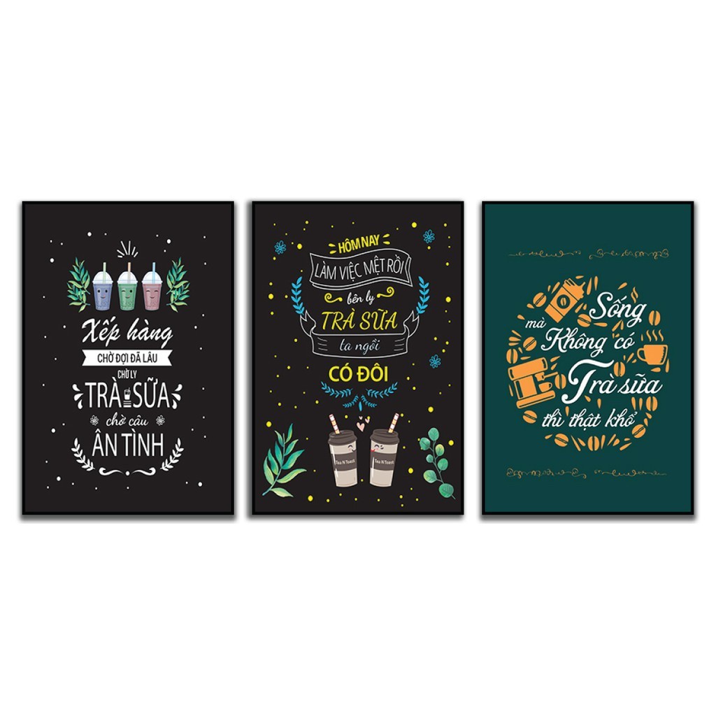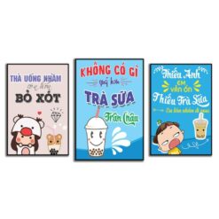 Tranh trang trí quán trà sữa hiện đại, tranh quán trà sữa bộ ghép treo tường nhiều mảnh trang trí