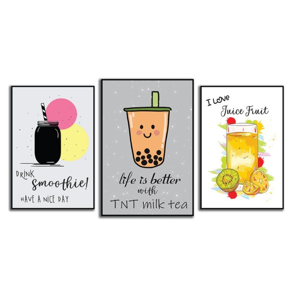 Review Tranh treo tường quán trà sữa độc đáo, tranh trang trí bộ ghép treo tường quán cà phê trà sữa