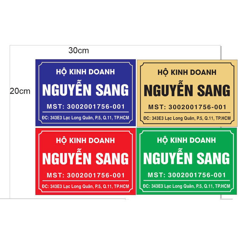 Bảng hộ kinh doanh, biển hộ kinh doanh, biển công ty, biển số nhà kt 20*30cm, 25x35cm, 30×40 chất liệu mica theo yêu cầu