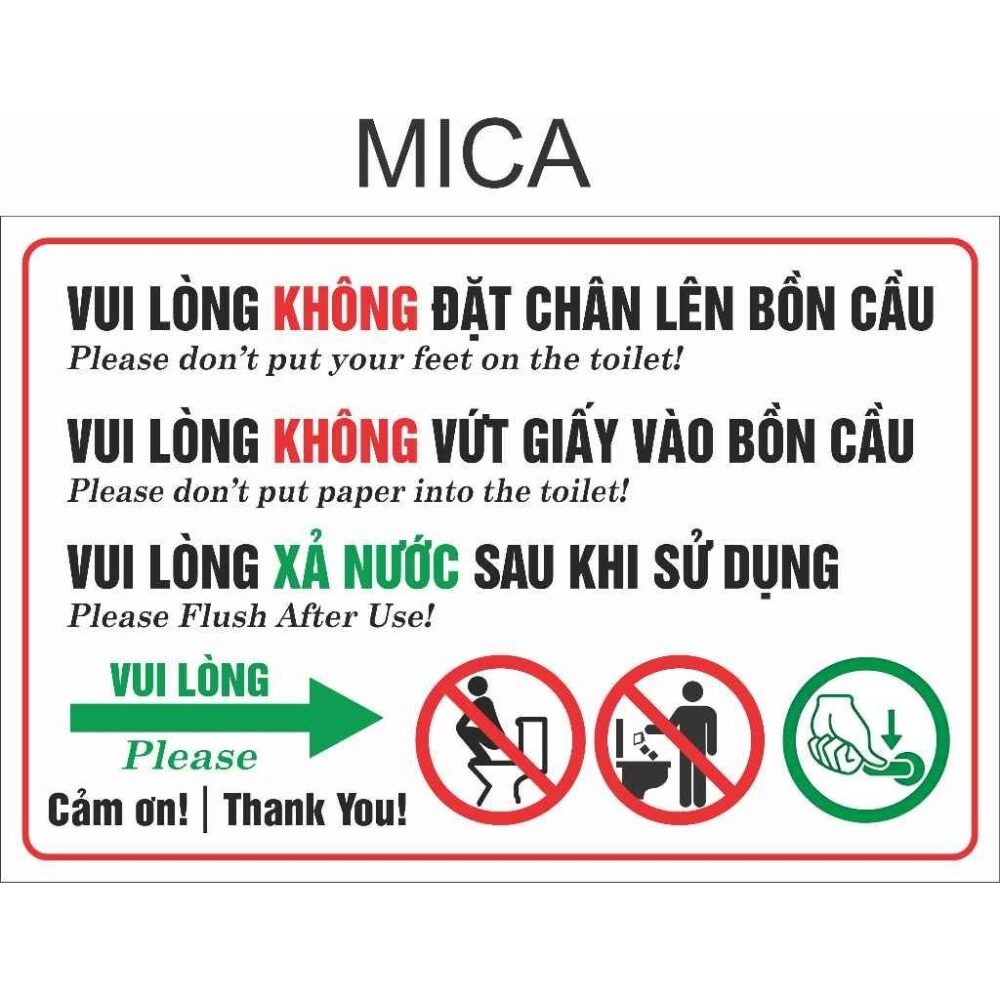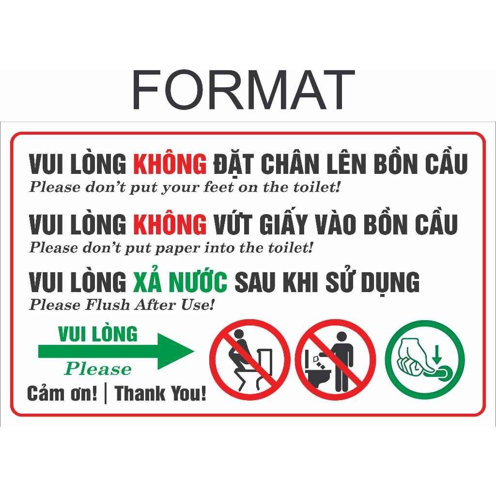 Biển Nội Quy Toilet, Nhắc Nhở Nhà Vệ Sinh, Không Bỏ Giấy Vào Bồn Cầu, Không Đặt Chân Lên Bồn Cầu Dán Tường, Kính