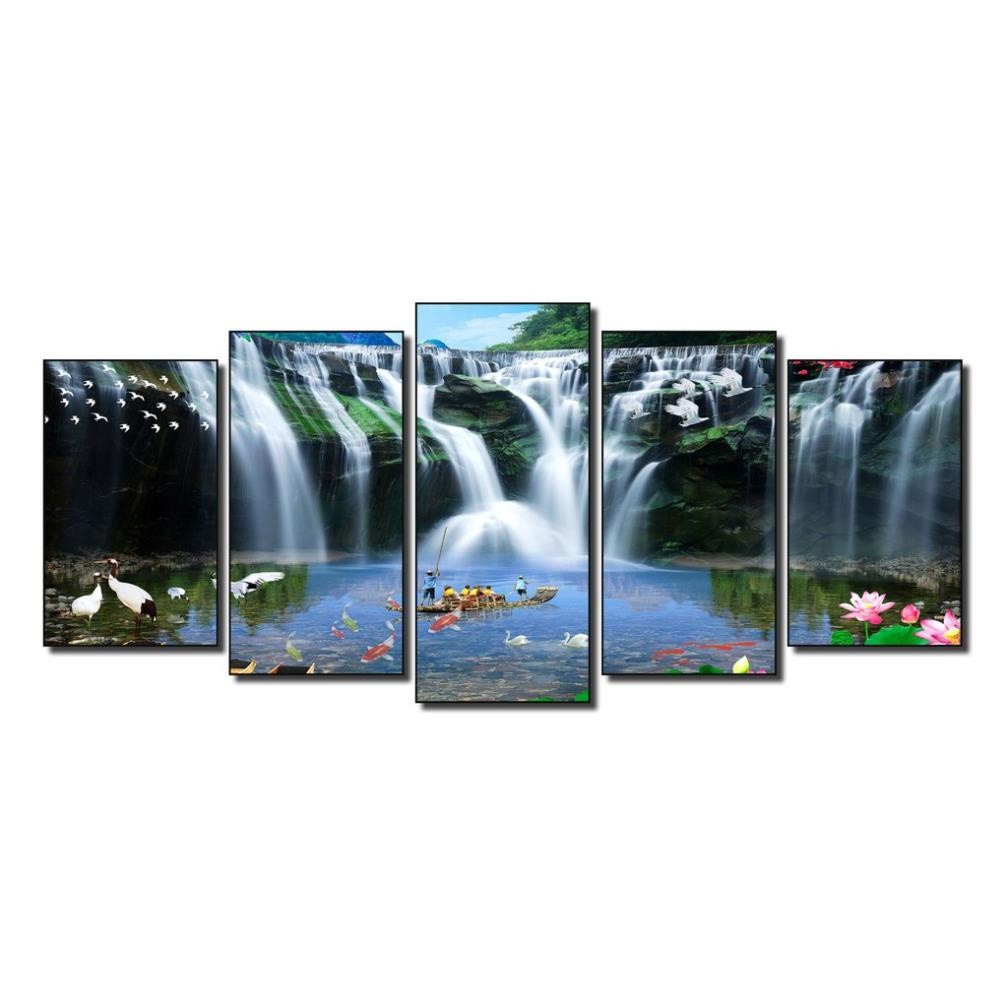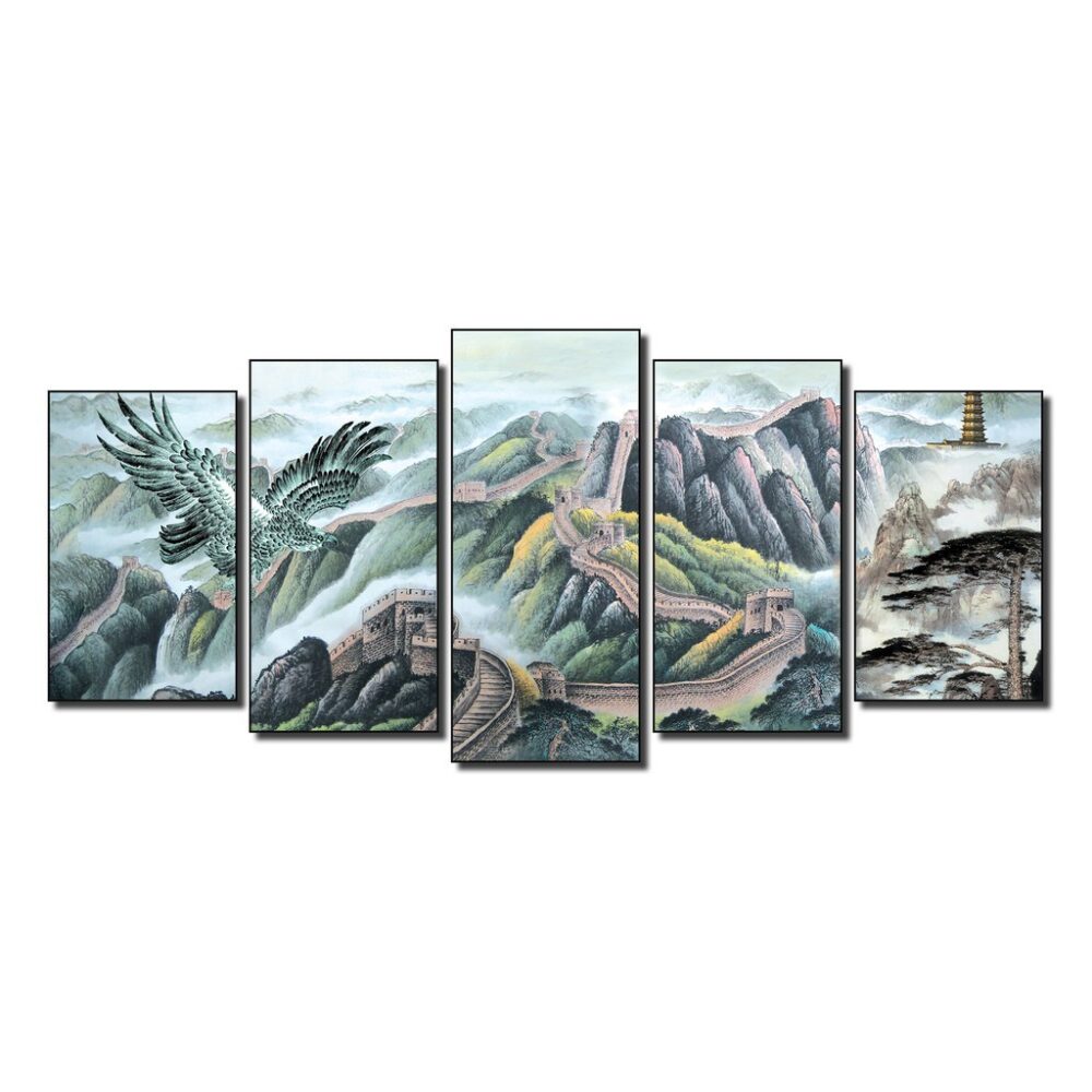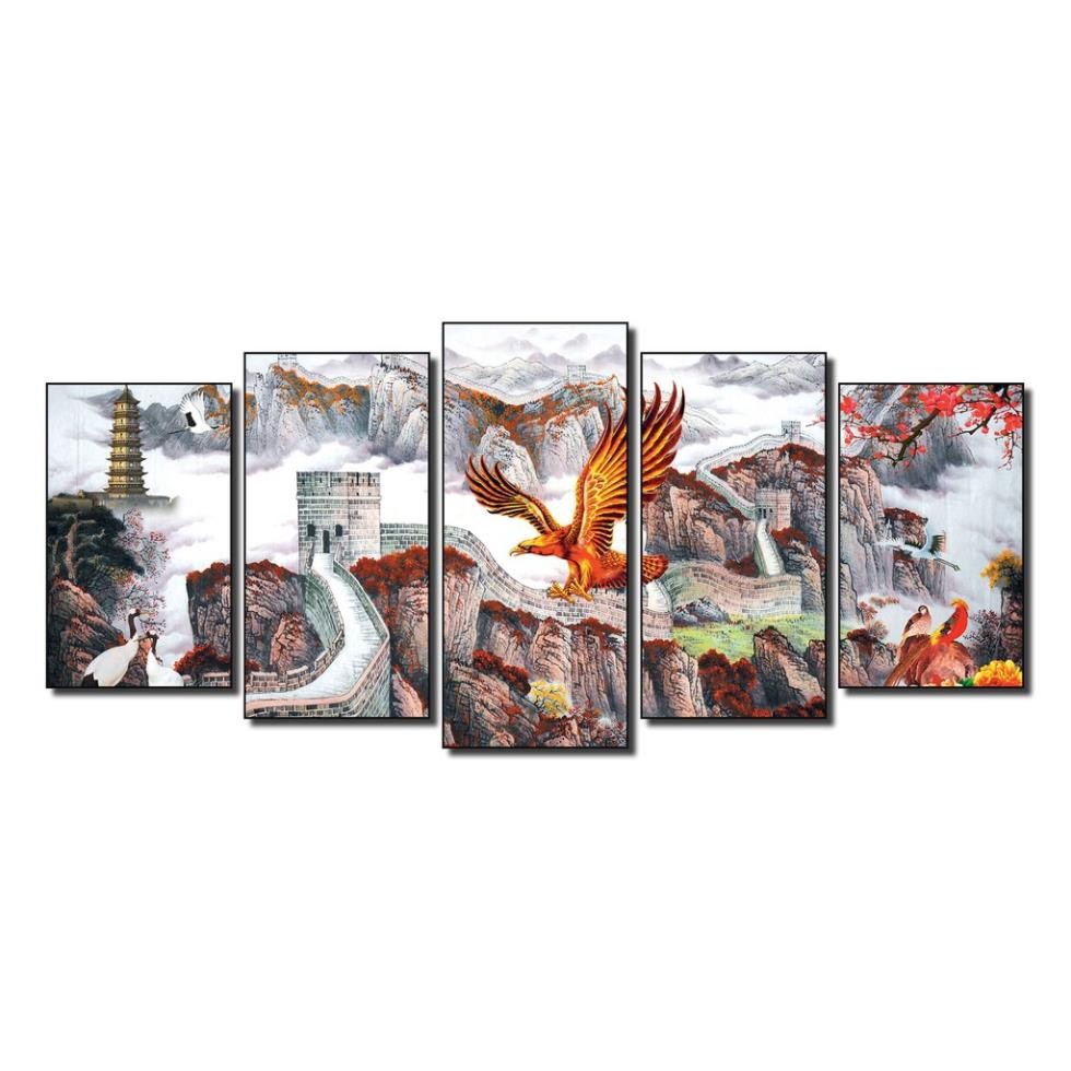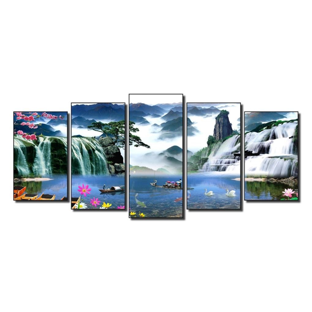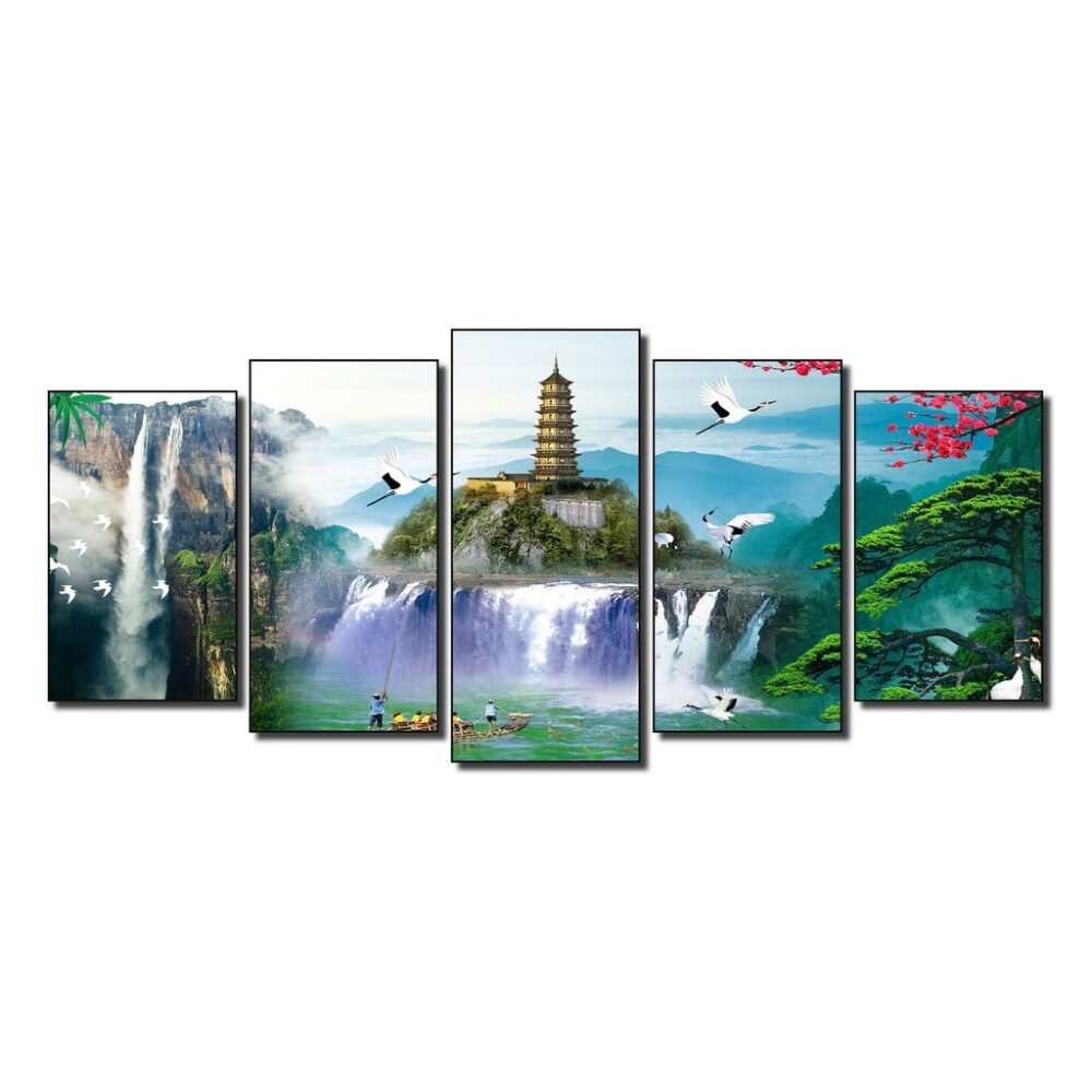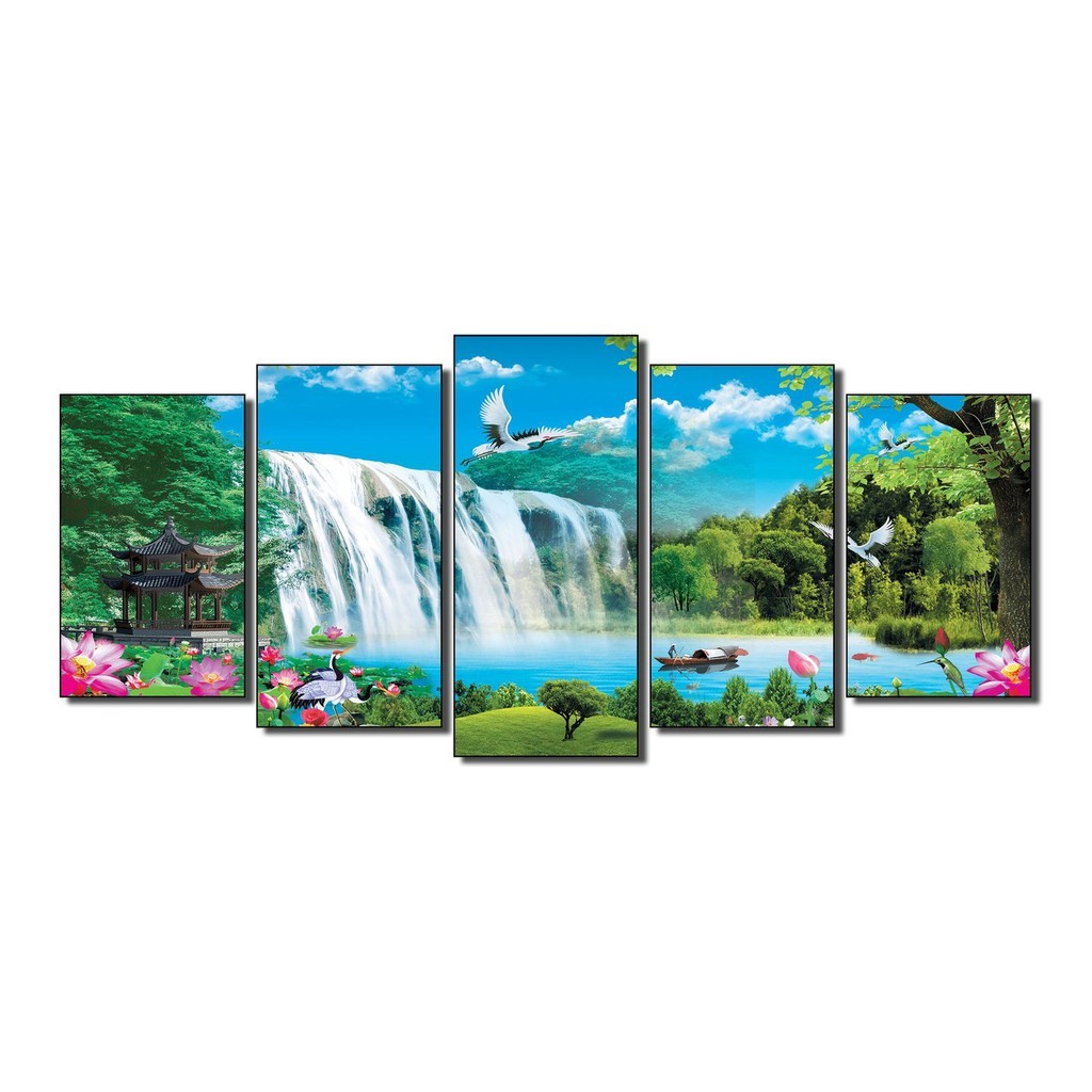 Review Tranh treo tường phong thủy, tranh phong cảnh trang trí nhà cửa bộ ghép 5 tấm bằng gỗ MDF dày 9mm